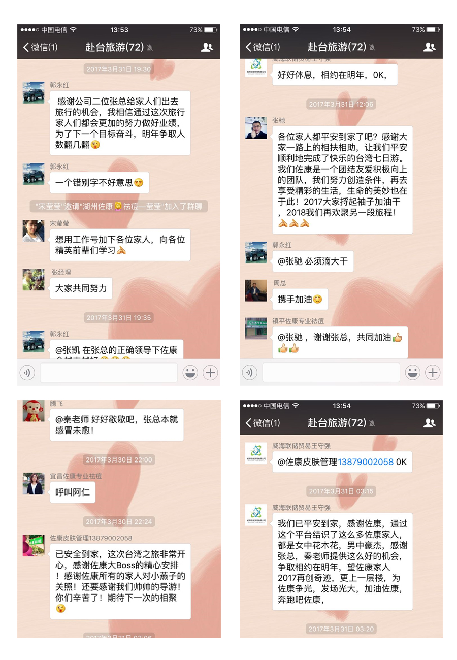 一路上,大家热情高涨,相互关心,旅途中充满了欢声笑语。在本次台湾之行中,不仅仅领略了台湾当地的自然风光和风土人情,享受海风扑面、碧海蓝天的闲暇,更为重要的是,通过这样一次身心上的放松之旅,公司员工与加盟商之间相互交流、互相帮助,感情更加亲近,提升了团队凝聚力。